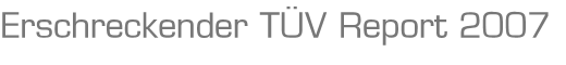 Der TÜV-Report 2007 zeigt es: Fast jedes fünfte Auto hat erhebliche Mängel. Ausführliches dazu im Artikel vom 30.1.2007 im Stern. GM – Geringe Mängel Geringe Mängel sind Mängel, bei denen eine kurzzeitige Abweichung von Vorschriften oder Richtlinien hingenommen werden kann und bei denen zum Zeitpunkt der Mängelfeststellung eine Verkehrsgefährdung kurzzeitig nicht zu erwarten ist. Zuteilung einer Prüfplakette ist möglich. Eine Nachprüfung ist nicht erforderlich, wenn die unverzügliche Beseitigung dieser Mängel durch den Halter des Fahrzeugs zu erwarten ist. EM – Erhebliche Mängel Erhebliche Mängel sind Mängel, die auf Abweichungen von den Vorschriften und den hierzu ergangenen Richtlinien beruhen. Diese Mängel lassen eine Verkehrsgefährdung erwarten. Dies gilt auch bei Summierung von GM, wenn diese in Zusammenhang stehen bzw. sich gegenseitig beeinflussen oder verstärken. Keine Zuteilung einer Prüfplakette. Eine Nachprüfung ist erforderlich. VU – Verkehrsunsicher Verkehrsunsichere Mängel sind Mängel, die eine unmittelbare Verkehrsgefährdung darstellen. Entfernen der vorhandenen Prüfplakette und unverzügliche Benachrichtigung der Zulassungsbehörde. Fahrzeugführer/-halter sind darauf hinzuweisen, dass das Fahrzeug so nicht mehr am öffentlichen Straßenverkehr teilnehmen darf.
